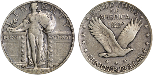 1923-S 25 Cents. ICG VF20. Evenly worn with attractive dove-gray surfaces. A key date that will surely catch the collector´s eye.