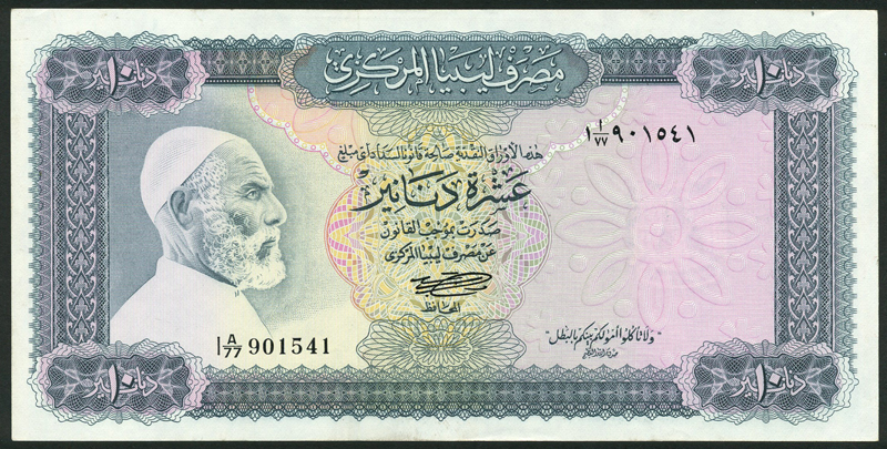 Central Bank of Libya, full set of the ND (1971) issue, comprising 1/4, 1/2, 1, 5 and 10 dinars, all with inscription