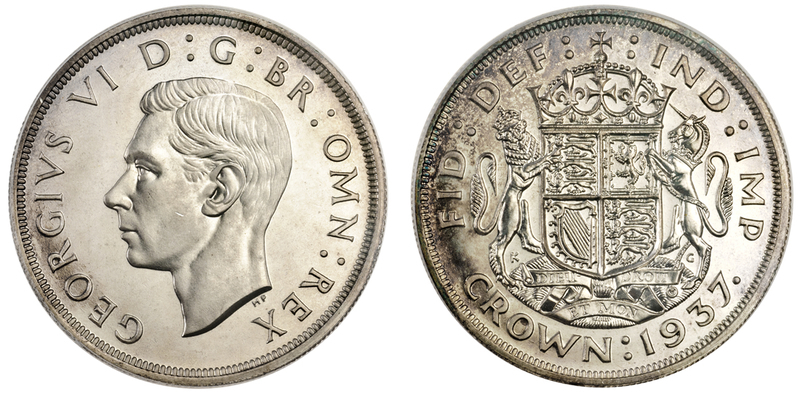 George VI, proof Crown, 1937, head left, rev. arms (ESC 393; S.4079), in PCGS holder graded PR65 CAM
