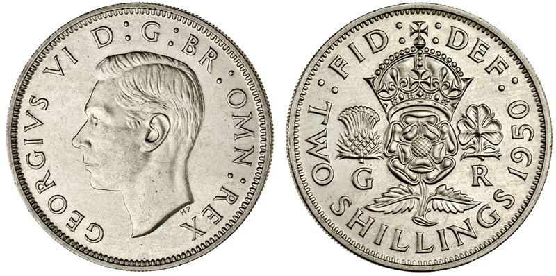 George VI, matt proof Florin, 1950, head left, rev. crowned rose (ESC 968c var; S.4107), as struck, of the highest rarity