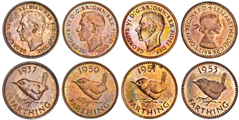 George VI, proof Farthings (3), 1937, 1950, 1951 (Peck 3457, 2484, 2486; S.4116, 4119), as struck, Elizabeth II, proof Farthing, 1953 (Peck 2522), as struck (4)