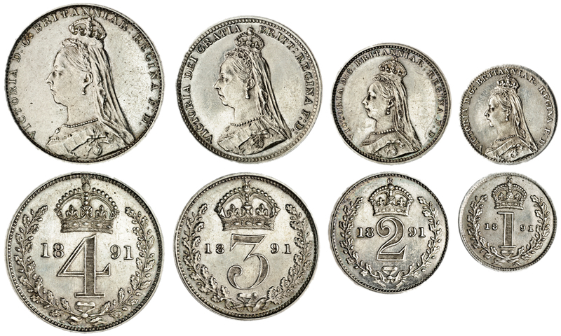 Victoria, Jubilee head Maundy set 1891 (S.3932), extremely fine (4)