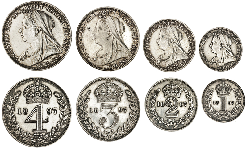 Victoria, old head Maundy set, 1897 (S.3943), extremely fine, in old case (4)