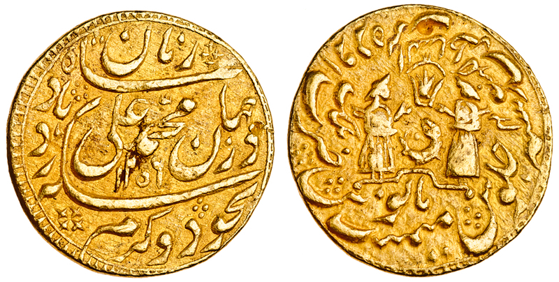 Indian States, Awadh, Muhammad ´Ali Shah (1837-42), AV Ashrafi, 10.73g, Awadh, AH1256, ry.4 (KM.322.1), reverse test punch at 12 o´clock, attractive, very fine