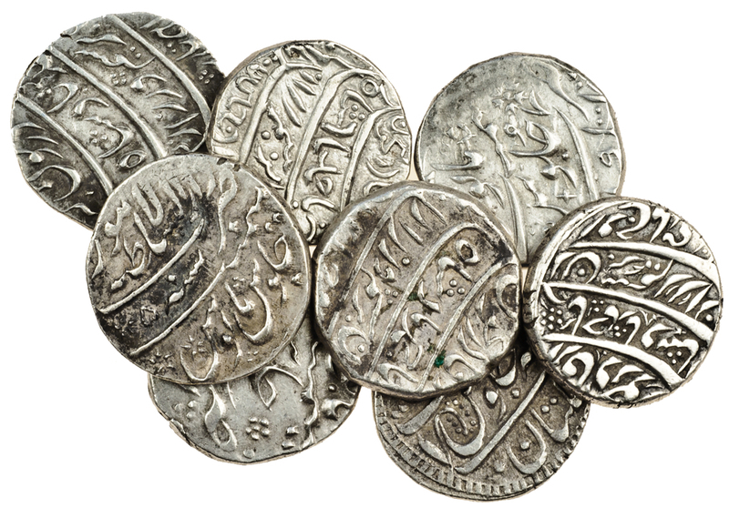 Afghanistan, Durrani, Ahmad Shah, Rupees (8), Attock (2), dates unclear, Dera, AH1170, Kabul, ry.7, Lahore, ry.5, Multan, AH1167, ry.7, Peshawar (2), AH1160, ry.1, ry.11 (KM.233, A313, 423, 623, 643, 693), very fine to extremely fine (8)