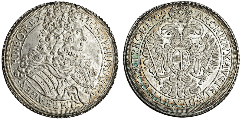 Austria, Joseph I (1705-11), Taler, 1709 imh, Vienna, bust right, rev. arms (Dav.1013; KM.1444), small metal weakness on edge between 11 and 12 o´clock, uncirculated, with lustre