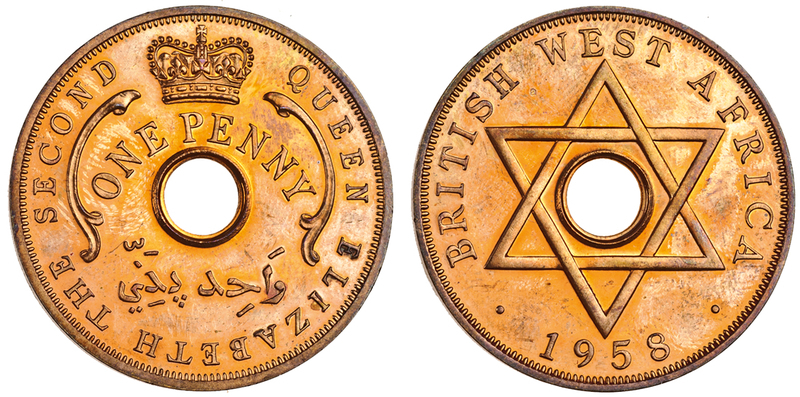 British West Africa, Elizabeth II (1952- ), proof Penny, 1958, crown over value, rev. star (KM.33), brilliant uncirculated, a lustrous red proof