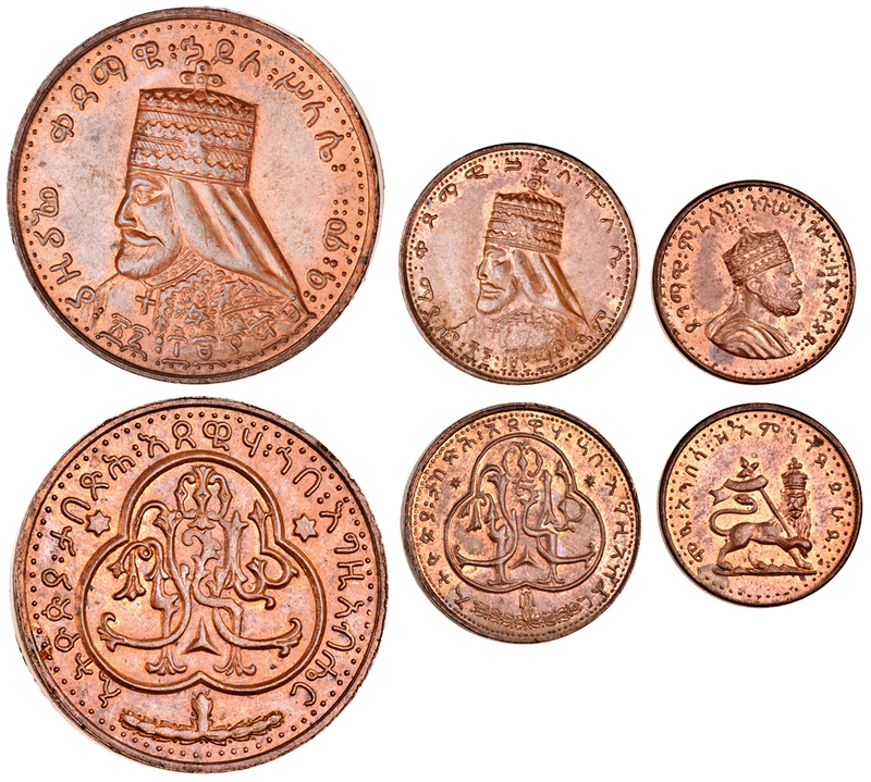 Ethiopia, Haile Selassie I (1930-36 and 1941-74), AE Trial or commemorative Half-, Eighth-Talari, 32mm, 20mm, Coronation of Haile Selassie, EE1923 (1931) (cf. KM.X.19); Menelik II (1889-1913), AE Trial, 17.5mm, bust of Menelik II right, rev. lion bearing standard right, about uncirculated with lustre (3)