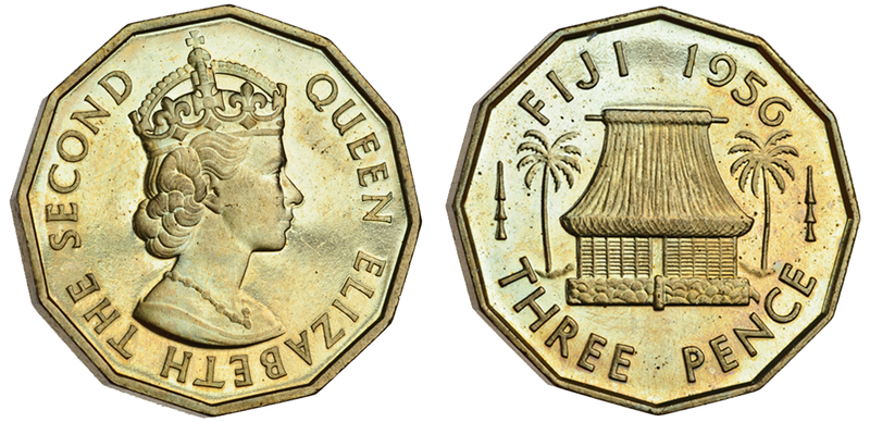 Fiji, Elizabeth II (1952- ), proof or V.I.P. Threepence, 1956, crowned bust right, rev. native hut (KM.22), brilliant uncirculated