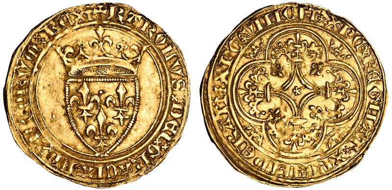 France, Charles VI (1380-1422), Écu d´or à la couronne, 3.98g, crowned shield, rev. cross in quadrilobe (Dup.369A; F.291), light scratches by shield, very fine