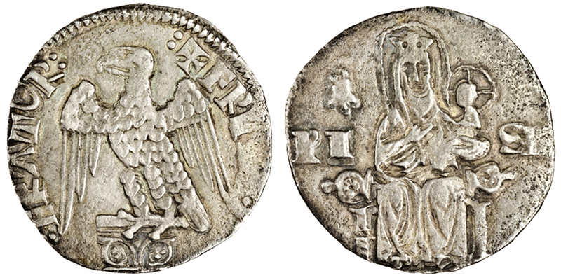 Italy, Pisa, Republic, Aquilini minori, Grosso da 2-Soldi, 1.73g, undated (1296-1312) eagle standing left, rev. Madonna and Child, bell to left (MIR.405/2), very fine