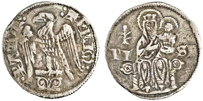 Italy, Pisa, Republic, Aquilini minori, Grosso da 2-Soldi, 1.70g, undated (1296-1312), eagle standing left, rev. Madonna and Child, branch to left (MIR.404/5), fine