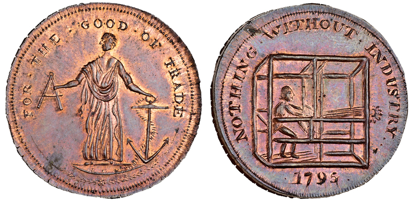 Dublin, Halfpenny, 1795, female standing with quadrant and anchor, rev. nothing without industry, man weaving, edge plain (DH 319), large flan, full lustre, uncirculated