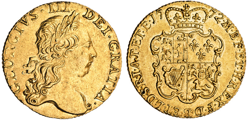 George III, Guinea, 1772, third laureate head right, rev. crowned garnished shield (MCE 377; S.3727), light marks on cheek and by first quarter of shield, lustrous, attractive, good very fine