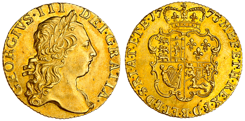 George III, Guinea, 1773, third laureate head right, rev. crowned garnished shield (MCE 378; S.3727), a few very light marks, extensive lustre, good extremely fine