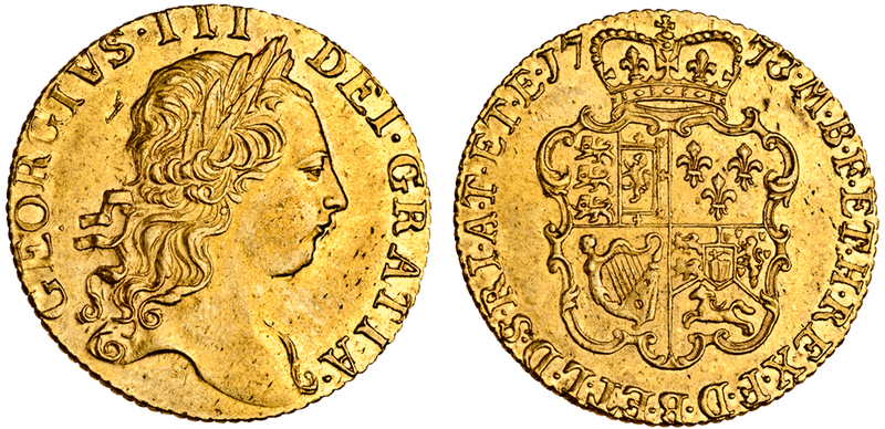 George III, Guinea, 1773, third laureate head right, rev. crowned garnished shield (MCE 378; S.3727), extremely fine