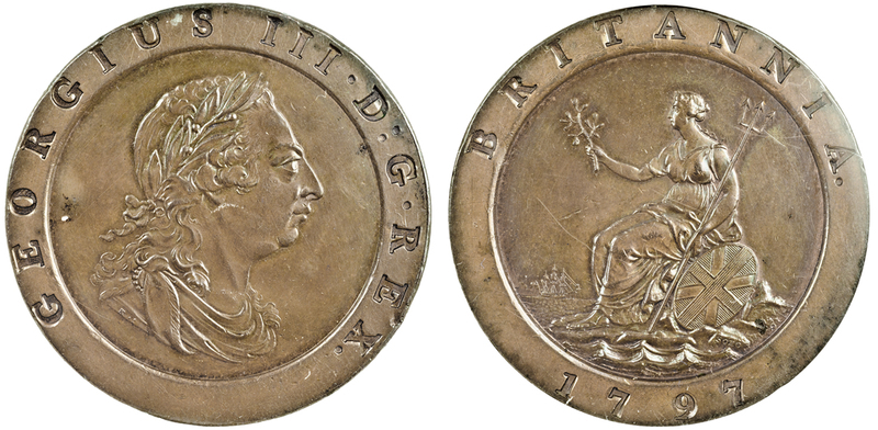 George III, Soho coinage, Twopence, 1797, laureate, draped bust right, rev. Britannia (Peck 1077; S.3776), in NGC holder graded UNC details surface hairlines