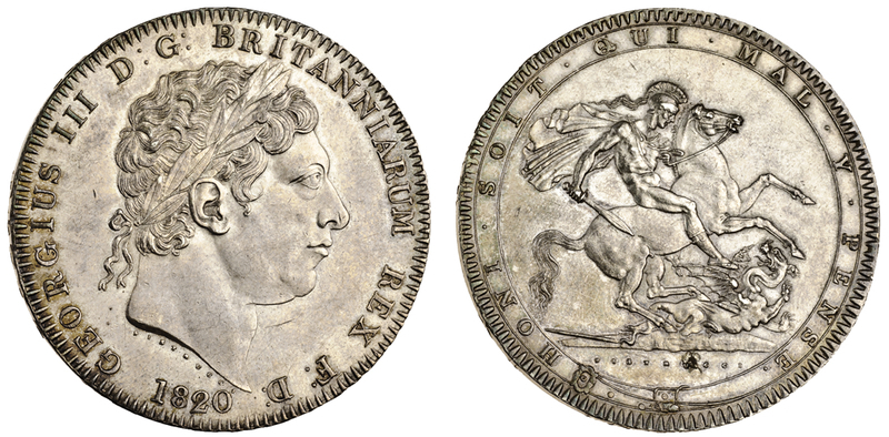 George III, Crown, 1820 lx, laureate head right, rev. St George and dragon (ESC 219; S.3787), some light marks, good very fine