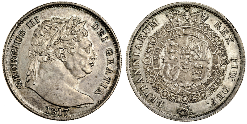 George III, Halfcrowns, 1817 (2), large head (ESC 616; S.3788), extremely fine, small head (ESC 618; S.3789), good fine (2)