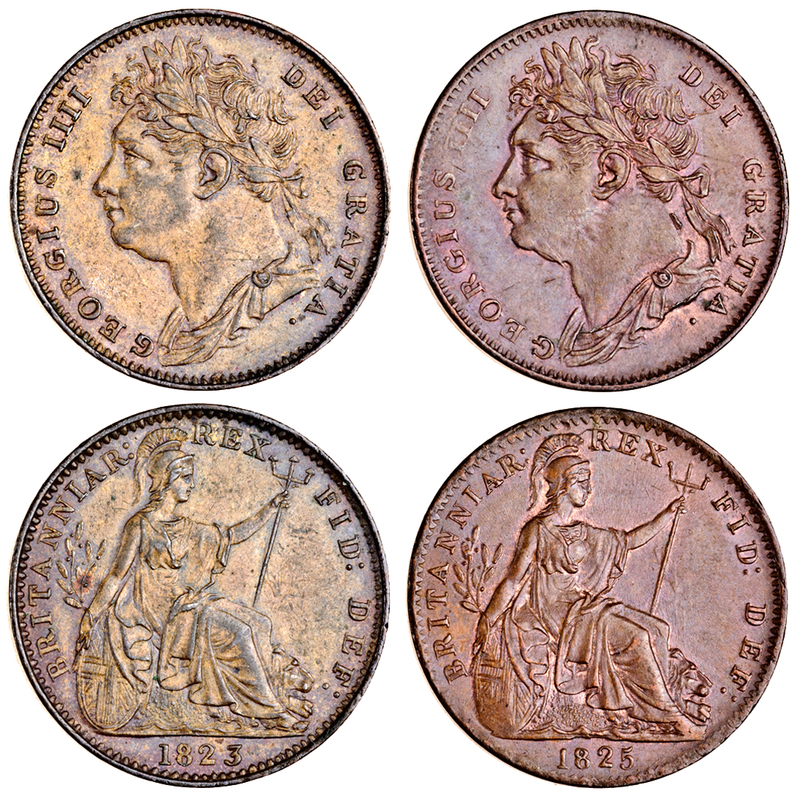 George IV, Farthings (3), first issue, 1823, 1825, 1826 (Peck 1412, 1414, 1416; S.3822), almost uncirculated (3)