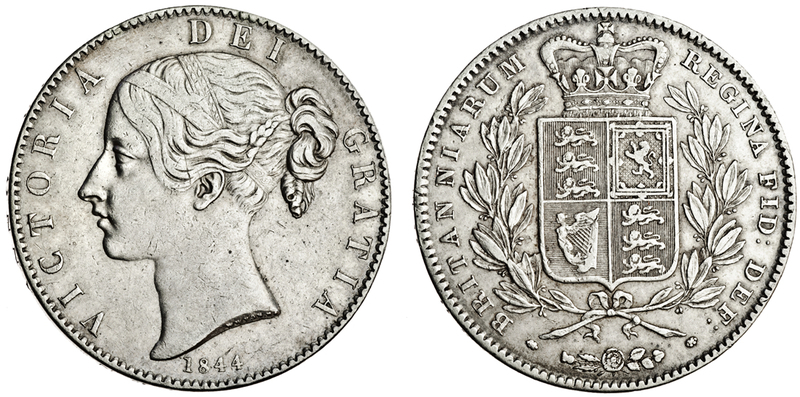 Victoria, young head Crown, 1844 viii, rev. shield within wreath, edge cinquefoil stops (ESC 281; S.3882), very fine