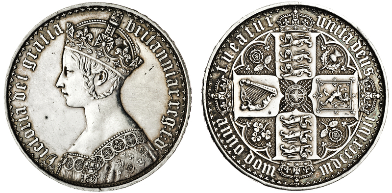 Victoria, ´Gothic´ Crown, 1847 undecimo, crowned bust left, rev. four crowned shields cruciform, emblems in angles (ESC 288; S.3883), polished, very fine