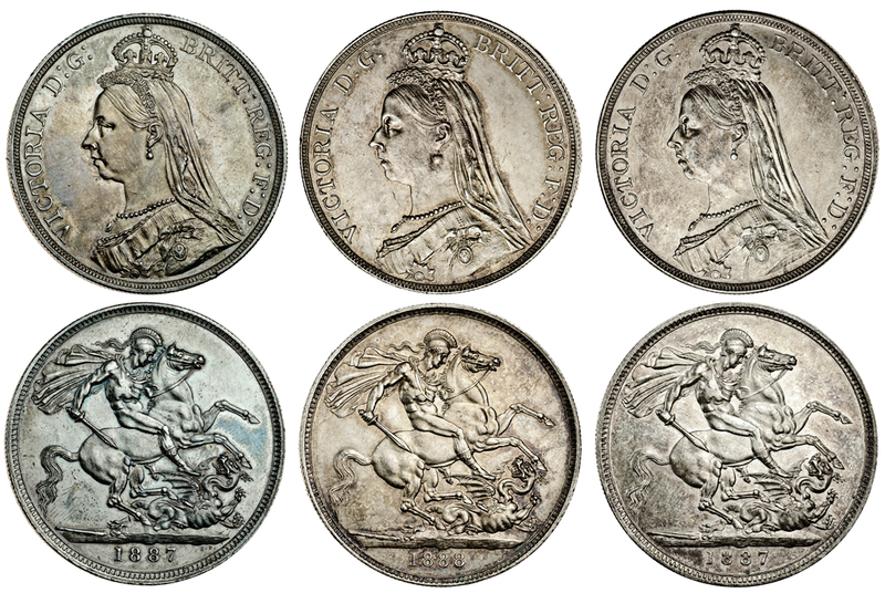Victoria, Crowns (3), Jubilee head (3), 1887 (2), 1888 (ESC 296, 298; S.3921), extremely fine (3)