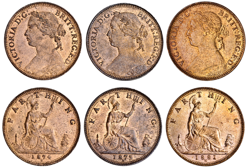 Victoria, ´bun´ head Farthings (6), Heaton mint, 1874H, 1875H, 1876H, 1881H (2), 1882H (Peck 1887, 1892, 1894, 1904, 1905, 1916; S.3959), one 1881H and the 1876H uncirculated, the others generally extremely fine - almost uncirculated (6)