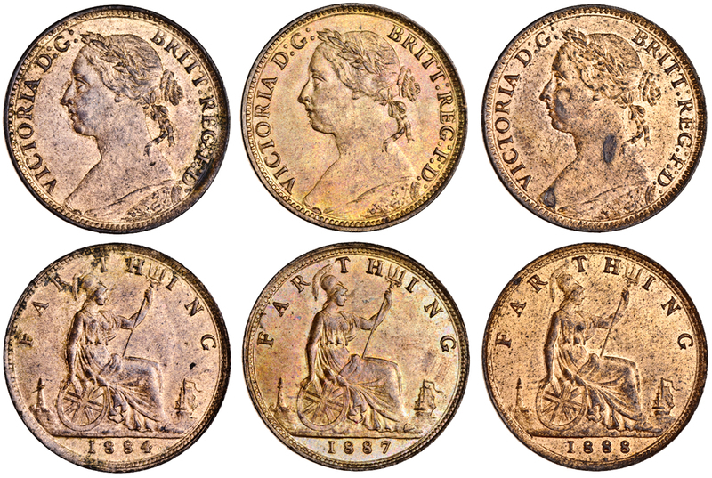 Victoria, ´bun´ head Farthings (6), 1883, 1884, 1885, 1886, 1887, 1888 (Peck 1907, 1909, 1911, 1913, 1915, 1916; S.3958), the 1887, uncirculated, the others generally extremely fine - almost uncirculated (6)