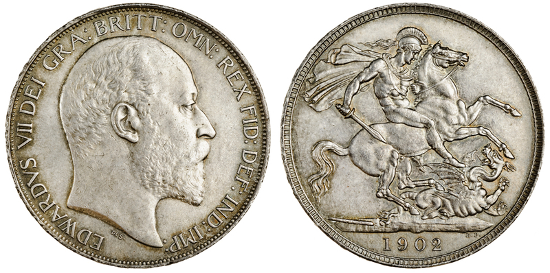 Edward VII, Crown, 1902, head right, rev. St George and dragon (ESC 361; S.3978), about uncirculated, grey tone