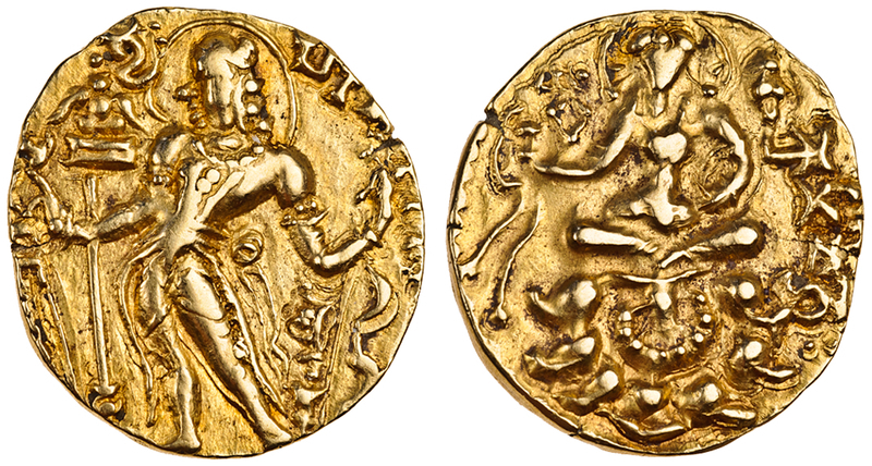 Gupta Dynasty, Skandagupta (c.455-80), AV Dinar, 9.08g, heavy standard, archer type, nimbate king standing left holding a bow right, rev. Lakshmi seated on a lotus (BMC Allan, 424-29; Altekar, Bayana, pl.XXXII, 2), good very fine