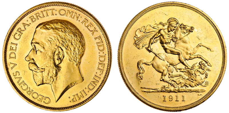 George V (1910-36), proof Five-Pounds, 1911, head left, rev. St George and dragon (S.3994), uncirculated but scuffs and marks on the brilliant surfaces