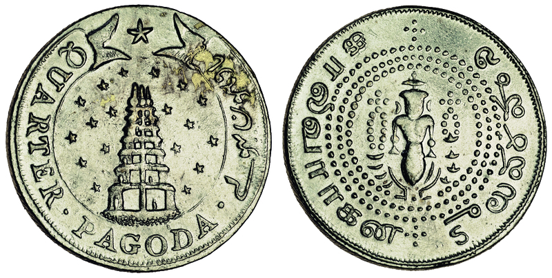 India, East India Company, Madras Presidency (first issue, 1807), Quarter-Pagoda, nine stars either side of gopuram (Pr.155, KM.343), silvered, very fine