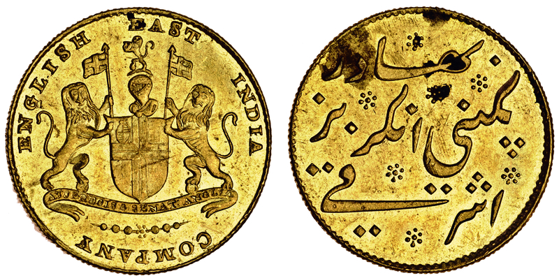 East India Company, Madras Presidency, Ashrafi (Mohur), undated (1819), with original South African Numismatic Society ticket (Pr.241; KM.421.2), some reverse staining, extremely fine