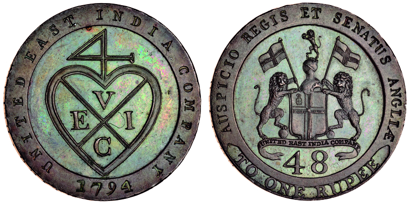 East India Company, Madras Circars (1794-97), proof bronzed- copper 1/48-Rupee (Dub), 1794 (Pr.311; KM.394), good extremely fine with lustre