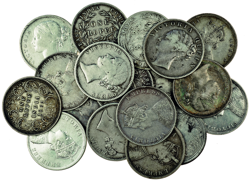 British India, Victoria, Rupees (15), 1840 (7), 1862 (3), 1878, 1879 (2), 1887, 1892; Bikanir State, Rupees (3), 1892, about fine to very fine (18)