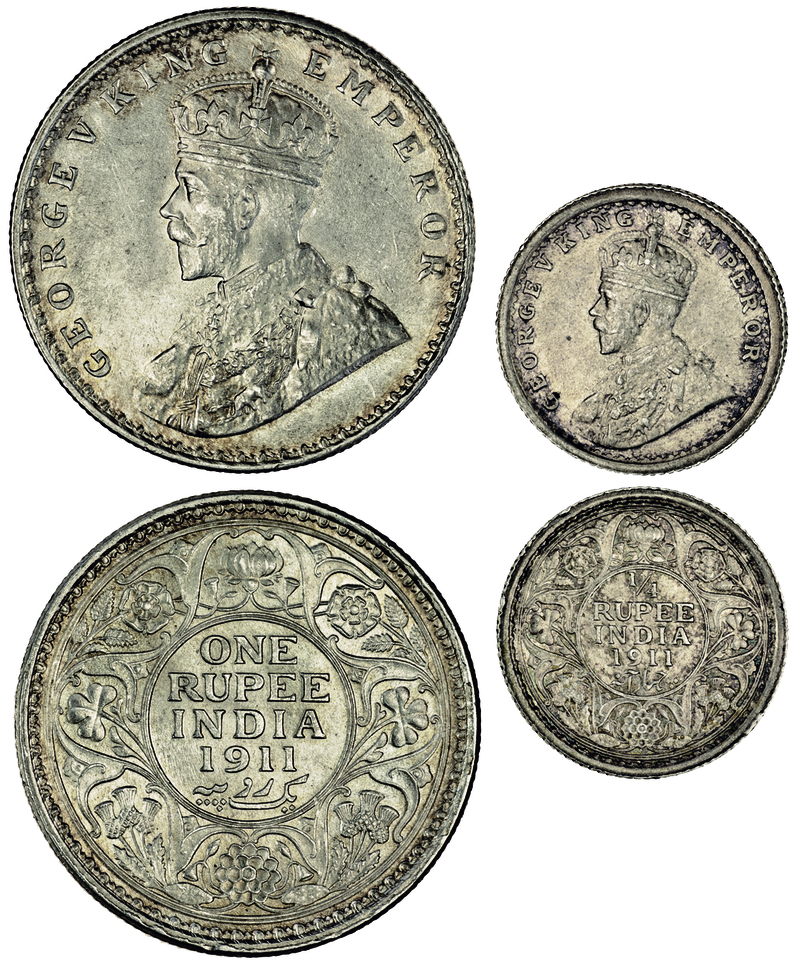 British India, George V (1910-36), 'Pig' Rupee, Quarter-Rupee, 1911, Calcutta (S.W.8.11, 8.136; Pr.207, 440; KM 517, 523), good extremely fine and extremely fine, scarce (2)