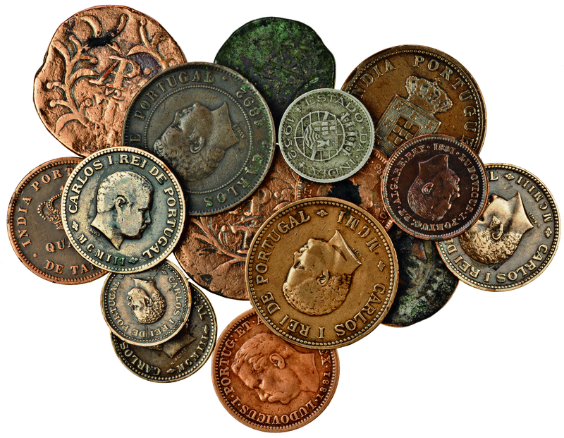 India, Portuguese Colonial, ¼-Rupia, 1952, AE ½-Tanga (2), AE ½-Atia (2), milled AE ½-Tanga (2), ¼-Tanga (4), 1/8-Tanga (3), 1/12-Tanga, 20-Reis, 1892 (KM.13, 14, 15, 16, 25, 37, 249, 307, 308), mostly cleaned and laquered, some with adhesions from mounting in an album, fine to extremely fine (16)