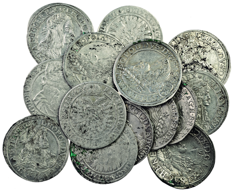 Austria, Leopold I (1657-1705), 15-Kreuzer (14), including Vienna, 1662 (3), 1664 (2), with AC monogram (mint master Andrea cetto), 1674, 1675 with rosette (mint master Franz Faber), all with XV below bust, rev. crown divides date (KM.1170), some verdigris and copper deposit, extremely fine, others 1662 CH (2), 1663 Graz, 1664 SH (2), 1664 FBL, and 1675 SHS, very fine and better (14)