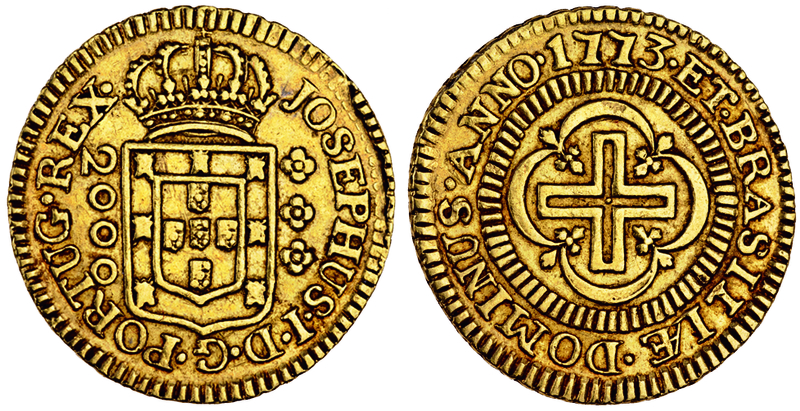Brazil, Joseph I (1750-77), 2000-Reis, 1773, crowned shield, rev. cross (F.74; KM.198), very fine