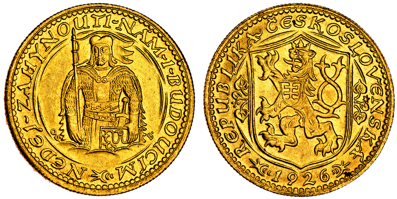 Czechoslovakia, Dukat, 1926, St Wenceslas, rev. shield (F.2; KM.8), extremely fine