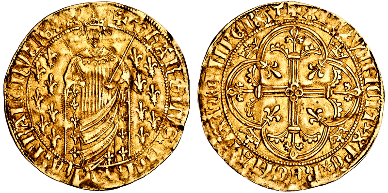 France, Charles VII (1422-61), Royal d'or, 3.74g, Montélimar, king standing facing, holding two sceptres, rev. cross fleury (Dup.455; F.303), slightly creased, about very fine