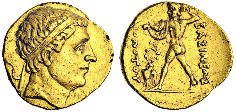 Kingdom of Bactria, Diodotos II (c.250-230 BC), AV Stater, 8.34g, diademed head right, rev. baie iootoy, Zeus striding left, aegis over extended left arm, hurling thunderbolt with right hand, eagle and wreath on left (SNG ANS 82; Bopearachchi 5A), a few surface marks from the soil, superb portrait on a large flan, extremely fine