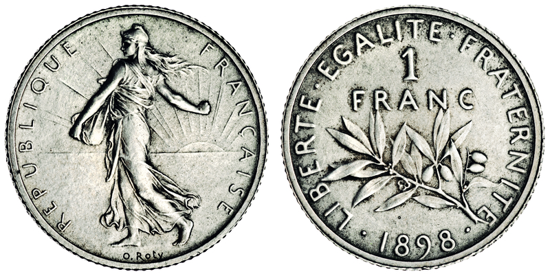 France, Third Republic, silver essai Franc, 1898, Semeuse, rev. value above branch, milled edge, struck in 'vieil argent' with a matte finish (Gad.467a; VG 4326), uncirculated, very rare