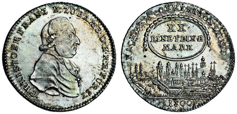 Germany, Bamberg, Bishopric, Christoph Franz, Freiherr von Buseck (1795-1801), Half-Taler, 1800, bust right, rev. city view, value above (KM.149), extremely fine