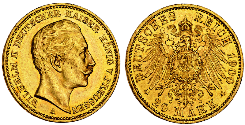 Germany, Prussia, Wilhelm II (1888-1918), 20-Marks, 1900A, head right, rev. eagle (F.3831; KM.521), extremely fine