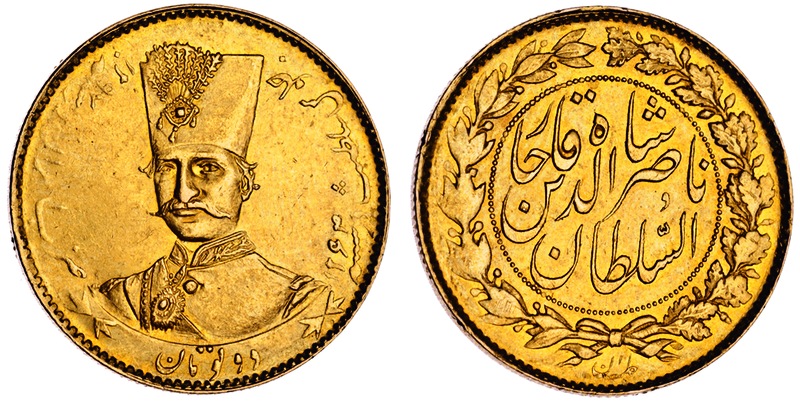 Iran, Qajar Dynasty, Nasir al-Din (1848-96), 2-Tomans, Tehran, AH1297 (1880), facing bust of Shah, rev. inscription within wreathed border (F.60; KM.942), very fine