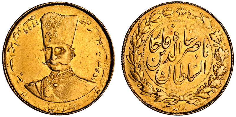 Iran, Qajar Dynasty, Nasir al-Din, 2-Tomans, Tehran, AH1299 (1882), facing bust of Shah, rev. inscription within wreathed border (F.60; KM.942), about very fine