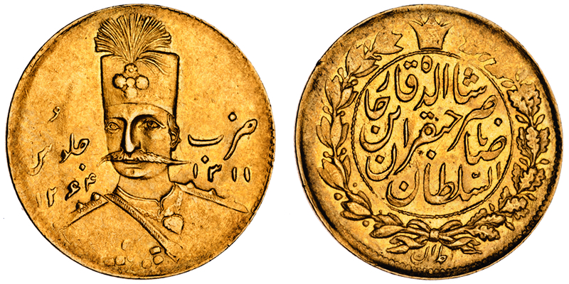 Iran, Qajar Dynasty, Nasir al-Din, Toman, Tehran, AH1311 (1893), second bust of Shah, rev. second inscription within wreathed border (F.62; KM.937), very fine