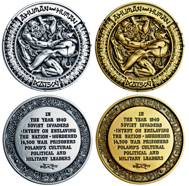 Poland, Medal Pamiatkowy Katynia, silver and bronze medals, 64mm., by the Medallic Art Company, numbered on the edge 005 and 240, with Monte Cassino 1946-1969 bronze medal, 63mm., all extremely fine (3)